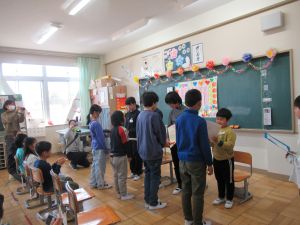 くすのき学級でお別れ会を行いました。いす取りゲームとフルーツバスケットで盛り上がった後、皆で書いた手紙を卒業する子にプレゼントしました。先生たちからは歌のプレゼントがあり、さみしいながらも楽しい1日でした。今のメンバーと一緒にいられるのも残り数日です。1日1日を大切に過ごしたいものです。