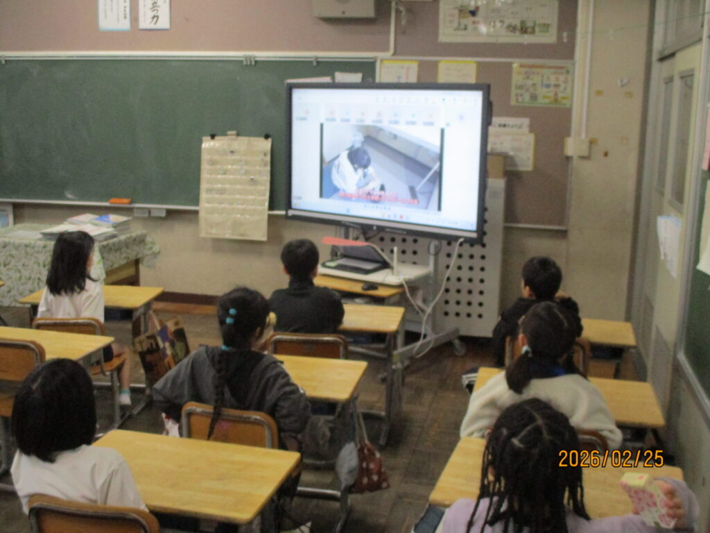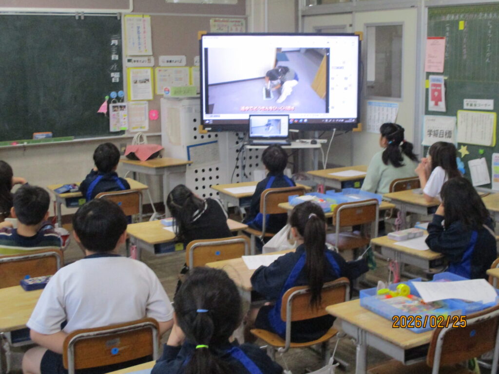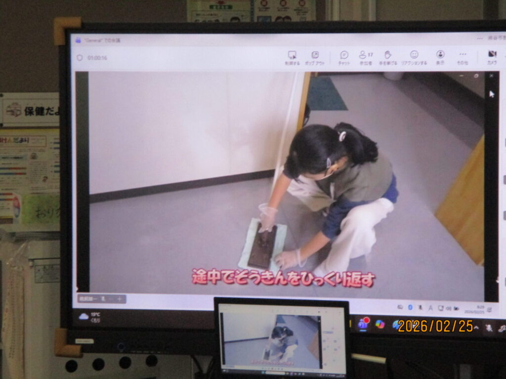 2月25日(水)朝、オンラインで保健委員会によるトイレ掃除の仕方の説明動画を流しました。実演しながら説明する分かりやすい動画によって、みんなトイレ掃除の方法やポイントがわかったようです。今日学んだことを生かしてトイレをいつもピカピカにできるといいですね。
