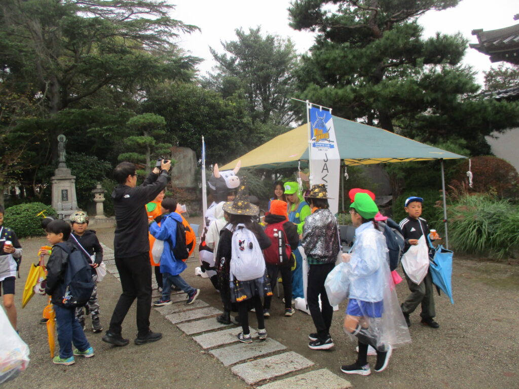 10月25日(土)、毎年恒例となったおやじの会の皆さんによる企画「成田星宮小ハロウィンウォーク」が行われました。200人以上の応募があり、ハロウィンにちなんだ思い思いの仮装をしながら校区内を歩きました。あいにくの天気でしたが、約3kmの道のりを、途中のチェックポイントでお菓子をもらいながら楽しく歩くことができました。学校に到着すると、熱々の肉まんをいただき、みんなホッとした表情で食べていました。インパクトのある個性豊かな衣装を身にまとった人たちの中から、様々な賞が選ばれ豪華賞品が渡されました。