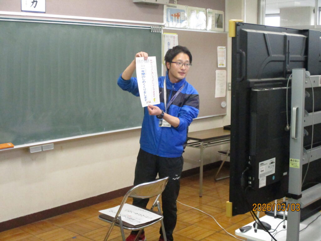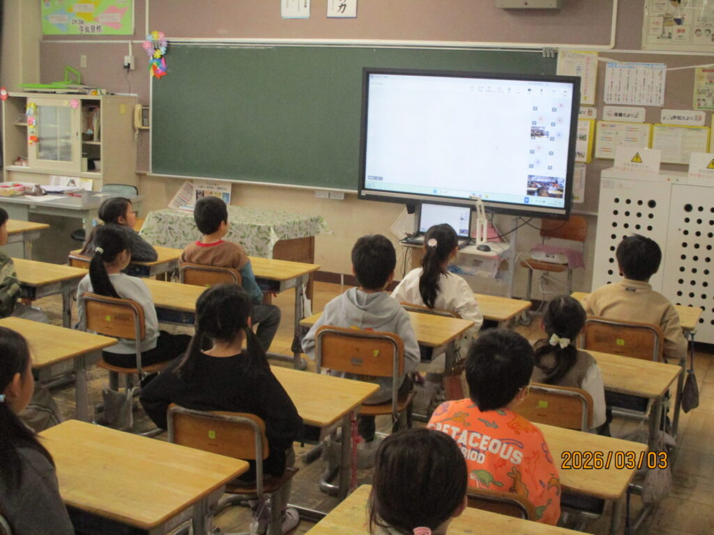 3月3日(火)、表彰のあと、3月の全校朝会がありました。校長先生からは、残りの期間で友達、先生、教室、6年生に「ありがとう」の気持ちをしっかりもって優しさあふれる最後の月にしようという話がありました。その後、生徒指導担当の先生から、まとめの月なので、学習の分からないところをそのままにしないこと、しっかり挨拶をすることなどの話がありました。6年生は卒業を、他の学年は今の学年のまとめを意識し、最後までしっかりやっていきたいです。