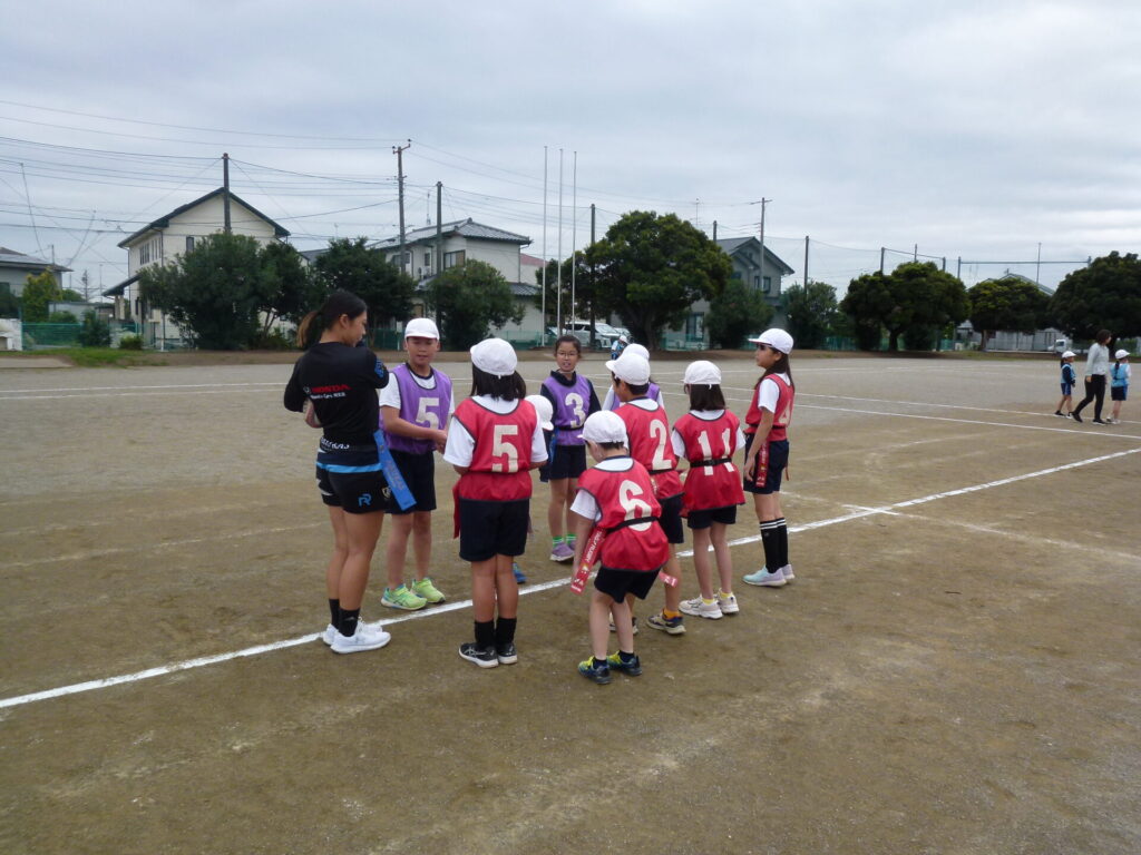 10月21日にARUKAS KUMAGAYAの選手の皆さんにタグラグビーについて教えていただきました。タグラグビーのルールやコツを丁寧に教えていただきました。最初はぎこちなかった「ボールを投げる」や「ボールを持って走る」という動作をご指導いただいたことにより、どんどん上達していきました。五年生の親善タグラグビー大会に向けて、貴重な経験をさせていただきました。