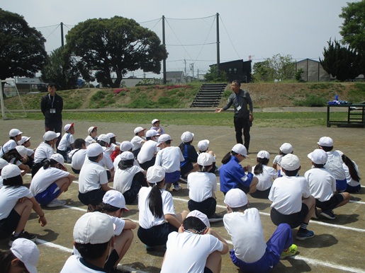 今日は、体育指導専門員の外村先生にお越しいただき、新体力テストの種目(50m走、ボール投げ、立ち幅跳び)の指導をしていただきました。