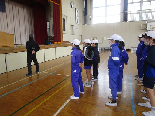 体育指導員の外村先生にお越しいただき、中学校に向けて体育の授業を受けました。