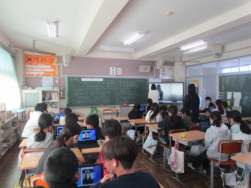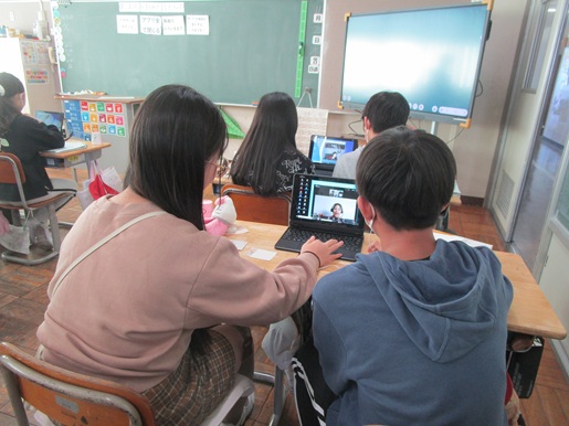 タブレット端末を使い、外国の方とオンラインで話をしました。